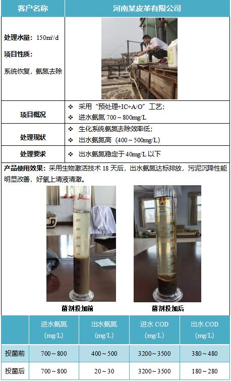 河南某皮革廢水氨氮去除案例