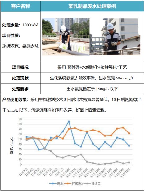 某乳制品廢水氨氮去除案例